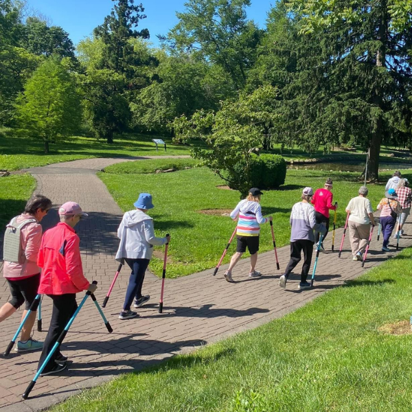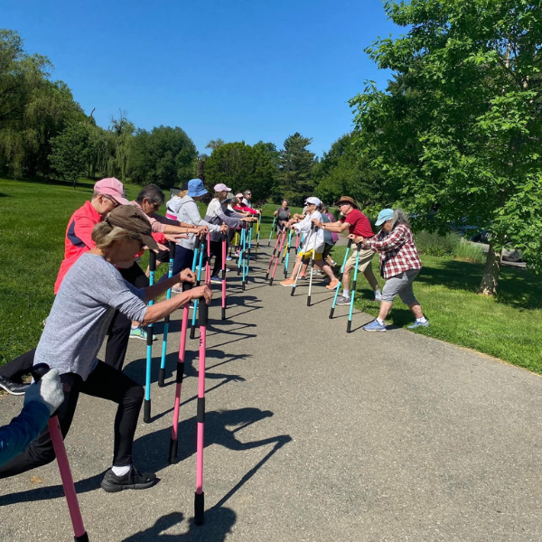 Group walking with Jetti Poles and Jetti Packs creates community and promotes movement to the aging seniors who need both.